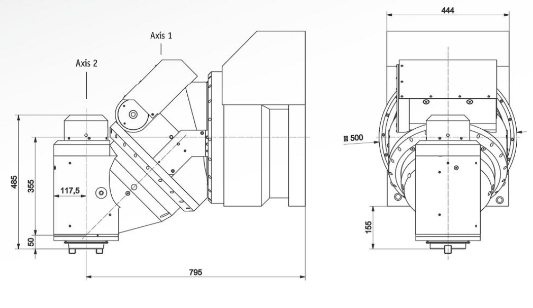 功率:30KW 可選: 25KW 40 KW 轉速:6000RPM 可選:4000RPM 扭矩:850N.m 可選:700N.m 1000N.m 1500N.m 輸出:BT50 /ISO 50/根據客戶要求; 刀具液壓夾緊松開 ,夾緊松開壓力100BAR ; 帶內冷80BAR ; A軸:連續分度±185° 精度:+/-5″ C軸: 連續分度±185° 精度:+/-5″ 重量: 800KG ; 尺寸如下圖; 含稅預算: 極具競爭力價格; 具體請垂詢! 貨期:24周; |