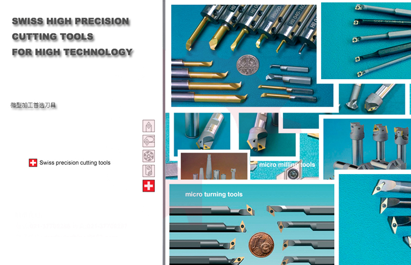 西鈦珂ToolSwiss?微型可轉(zhuǎn)位數(shù)控車削和銑刀及小孔加工刀具,,應(yīng)用于醫(yī)療、電子、液壓、精密零件等高科技領(lǐng)域!我們的重大優(yōu)勢在于用微小可轉(zhuǎn)位數(shù)控刀片代替大部分整體硬質(zhì)合金才能加工的工況,大大降低加工成本;同時對高硬度和難加工材料有重要優(yōu)勢! 瑞士ToolSwiss?微型精密數(shù)控車刀、小孔鏜刀及銑刀: 1、MicroTurn A/S 系列(整體硬質(zhì)合金小孔鏜刀): ? 內(nèi)圓車削(鏜孔),可小至? 4.8 mm;采用CDGT 0401系列刀片; 3、微型小孔鏜刀:加工范圍:0.4mm-30mm;微型精鏜頭:¢ 24mm ; 4、MiniTools 系列(ISO可轉(zhuǎn)位數(shù)控刀片): ? 內(nèi)圓車削(鏜孔),可小至? 5.8 mm 和? 8.0;